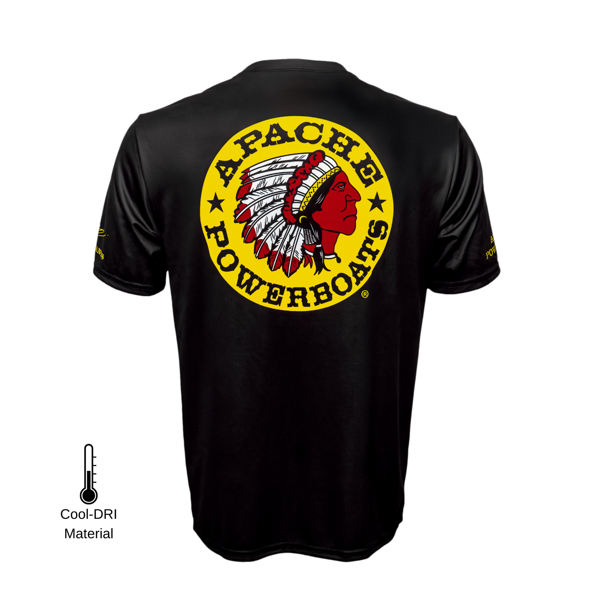 - Iconic Branding: "Apache Powerboats" printed on the right sleeve, with the legendary Apache warrior logo on the back for an unmistakable look.