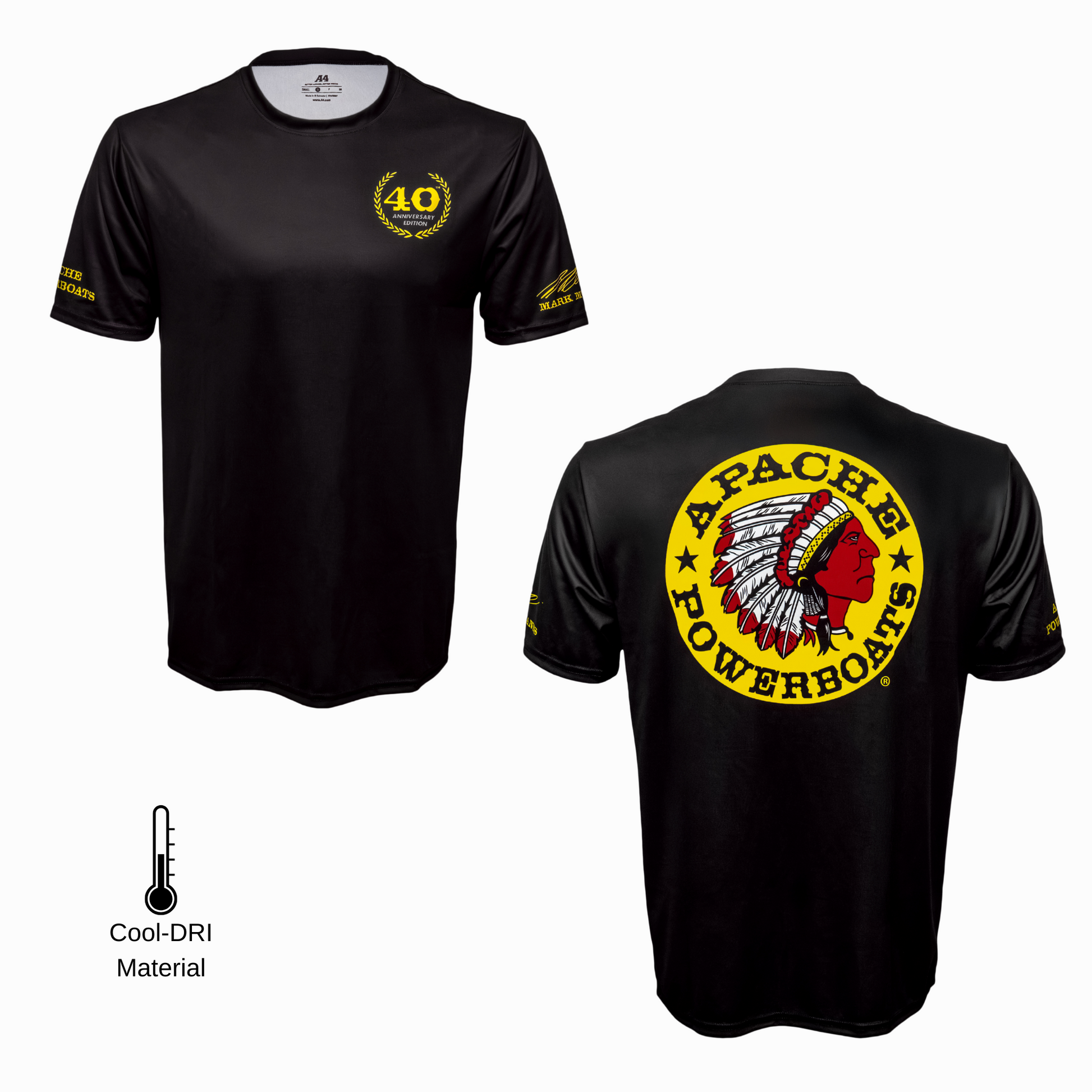 Celebrate 40 years of offshore dominance with the Apache Powerboats® 40th Anniversary Performance Tee. Engineered with 5-Star Cool-DRI fabric, this lightweight, moisture-wicking shirt is built for high-performance comfort—perfect for long days on the water or casual wear.